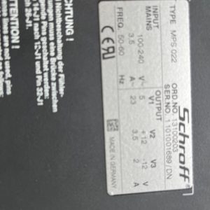 MPS 022, SCHROFF VME POWER SUPPLY MPS-022, 13100203 ——3 IN STOCK ——- MPS 022, SCHROFF VME POWER SUPPLY MPS-022, 13100203